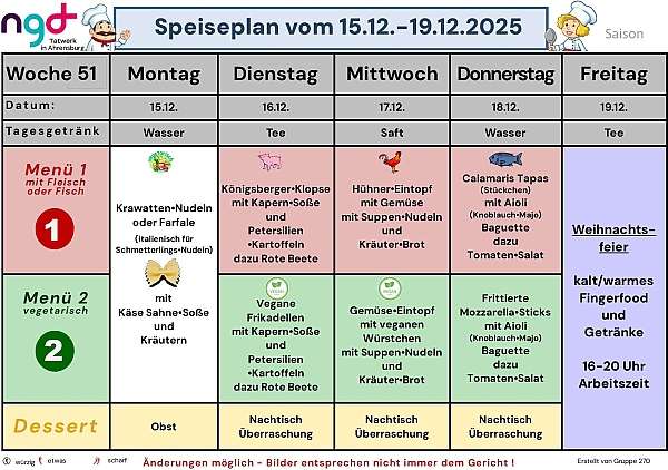 Hier findet man in der Regel unseren aktuellen Speiseplan der laufenden Woche.